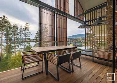 Velkým benefitem jsou dvě prostorné terasy, které rozšiřují obytný prostor a nabízejí otevřené výhledy na vodu i přístaviště. Právě propojení interiéru s okolní krajinou dává tomuto místu jedinečnou atmosféru v průběhu celého roku.